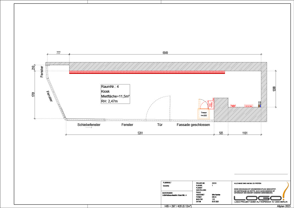 Die Fläche umfasst ca. 11,5 m² – ideal für ein effizientes, gut sortiertes Kiosk-Konzept. Dank der zentralen Position ist der Standort perfekt geeignet, um spontane Käufe und „Grab & Go“-Bedarf abzudecken.